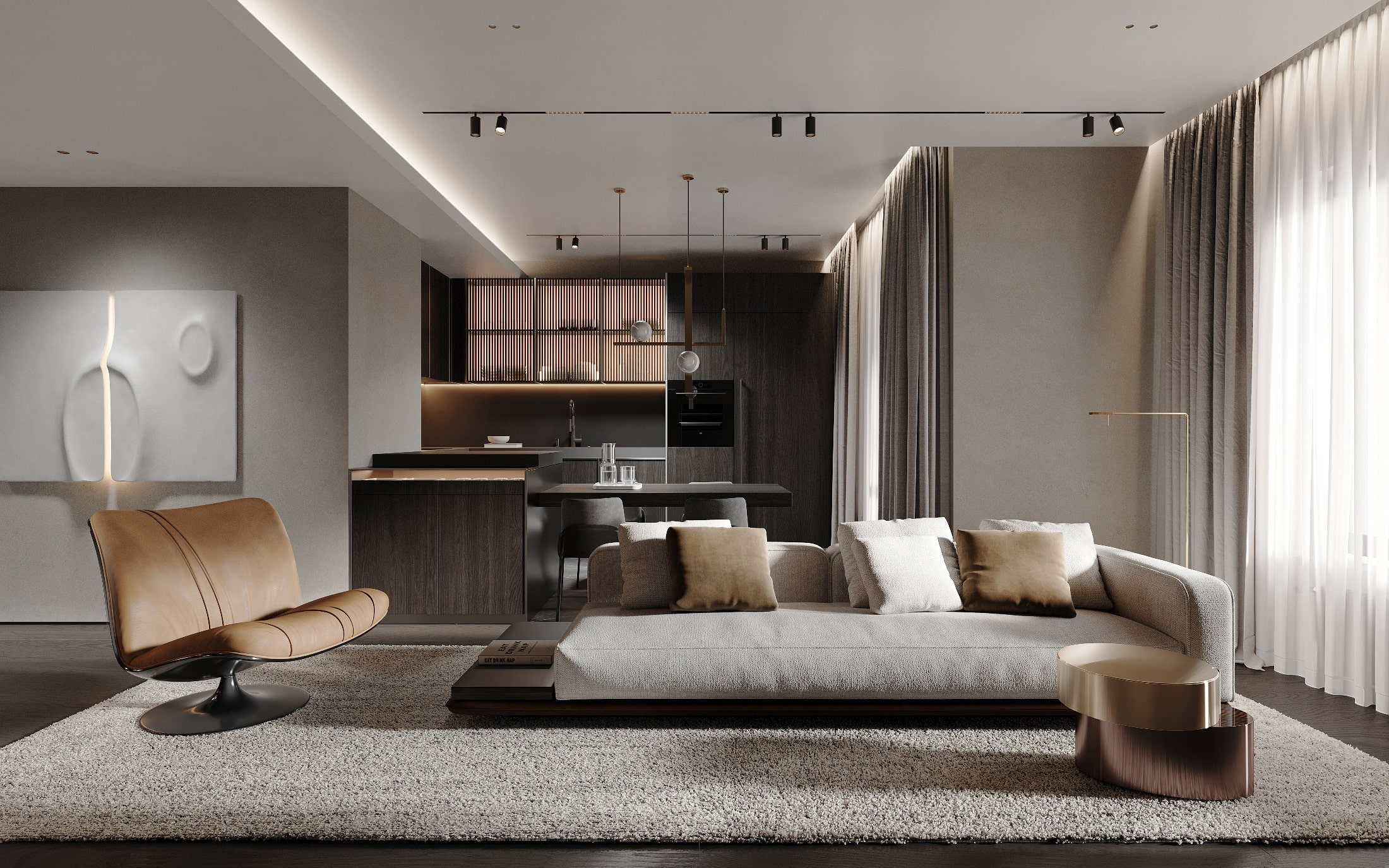 - Гармония нейтральных тонов, которые лишь дополняются светом, порождает чувственную гармонию.